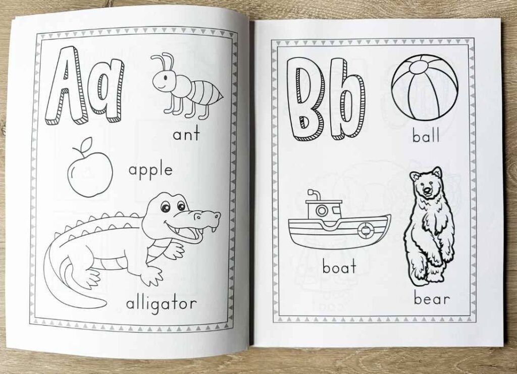 This Alphabet Coloring and Tracing Book is perfect for your young learner! Build early literacy skills in letter recognition, phonics with objects with same beginning sound, and tracing letters all while coloring!